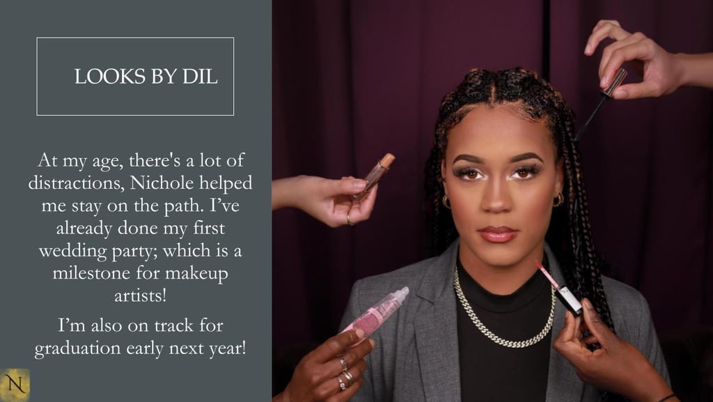 Nichole's strategies have enabled me to balance multiple roles as a Makeup Artist, Certified Nursing Assistant, and college student. By focusing on smaller, manageable goals, I'm less overwhelmed and thriving! I'm excited to be on track for graduation this summer!"